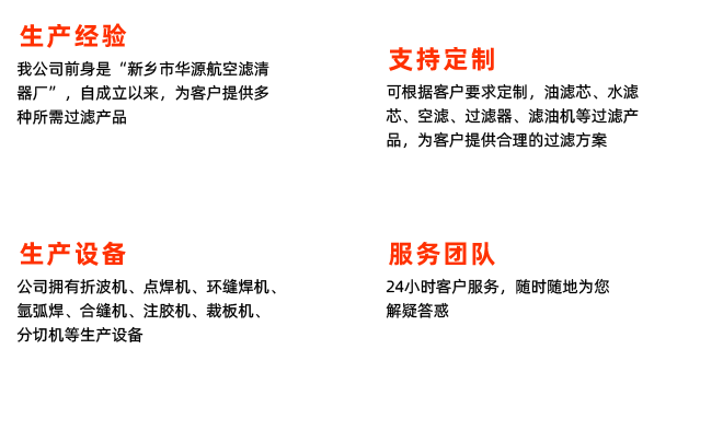 • 新鄉市華航濾清器有限公司是一家專注工業過濾的高新技術企業,公司創立于2003年,現位于新鄉市衛濱區先進制造開發區韶華路199號。公司先后通過ISO9001、CE等認證,并獲評專精特新企業資質,擁有多項國家專利。在生產方面,公司依托自動化生產線及專業研發團隊,自主研發了油過濾系統、工業級空氣凈化裝......更多>>